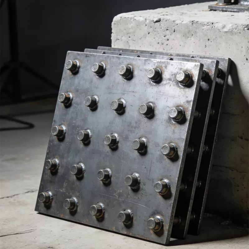Основна функція вбудованої сталевої пластини зосереджена на трьох основних позиціонуваннях, які є ключовим носієм для з’єднання основного корпусу будівлі та допоміжної конструкції: як вузол передачі навантаження, він може взяти на себе власну вагу, вітрове навантаження та вібраційне навантаження допоміжних компонентів, таких як навісна стіна та скляна перегородка, і рівномірно передавати розподілене навантаження на основну бетонну конструкцію, щоб уникнути структурних пошкоджень, спричинених локальною концентрацією напруги; Як контрольне позиціонування встановлення, спираючись на точне позиціонування на етапі попереднього вбудовування, воно забезпечує фіксоване посилання для встановлення наступних опор і компонентів, забезпечує регулярне розташування допоміжних конструкцій, а точність встановлення досягає стандарту, а також значно скорочує вторинну обробку та процедури регулювання на місці; як гарантія структурної стабільності, він утворює міцну інтегровану конструкцію з бетонною заливкою, ефективно покращує стабільність з’єднання між зовнішніми компонентами та основною конструкцією, покращує загальні протиперекидні та антивібраційні можливості будівлі та продовжує термін служби допоміжних конструкцій будівлі.