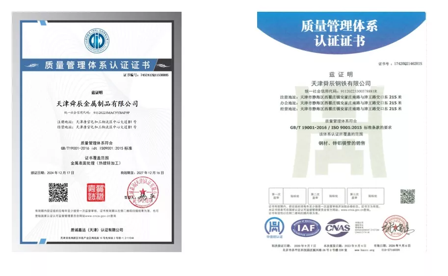 Чому обирають нас? Компанія Tianjin Shuncheng Industry може похвалитися роками накопиченої виробничої технології, зберігаючи 12-річний рекорд про нуль замовчування та нуль щорічних інцидентів якості, закладаючи міцну основу для якості продукції. Компанія суворо дотримується національних виробничих стандартів і має сертифікати системи ISO 9000, 3A та ЄС CE. Завдяки 12-етапному процесу та 3-рівневому механізму повної перевірки він досягає нульових інцидентів якості та безпеки щорічно та нульового замовлення за замовчуванням протягом 12 років, демонструючи свою перевірену силу. Кожен готовий продукт проходить сушку, перевірку та фінішну обробку перед пакуванням і транспортуванням, що забезпечує найвищу якість. Компанія налічує понад 300 виробничих працівників і може виробляти 236 специфікацій сталевих труб ERW, пропонуючи повний спектр специфікацій і підтримуючи налаштування для точного задоволення різноманітних потреб.
